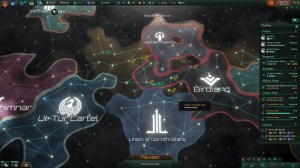 But ultimately I decide to go for Hiffnar’s land. I’d like to expand in the unexplored galactic north, which would also cut Hiffnar from going any further inland. There’s also a great chokepoint system to contain them to their quadrant if I can seize that much ground from them.